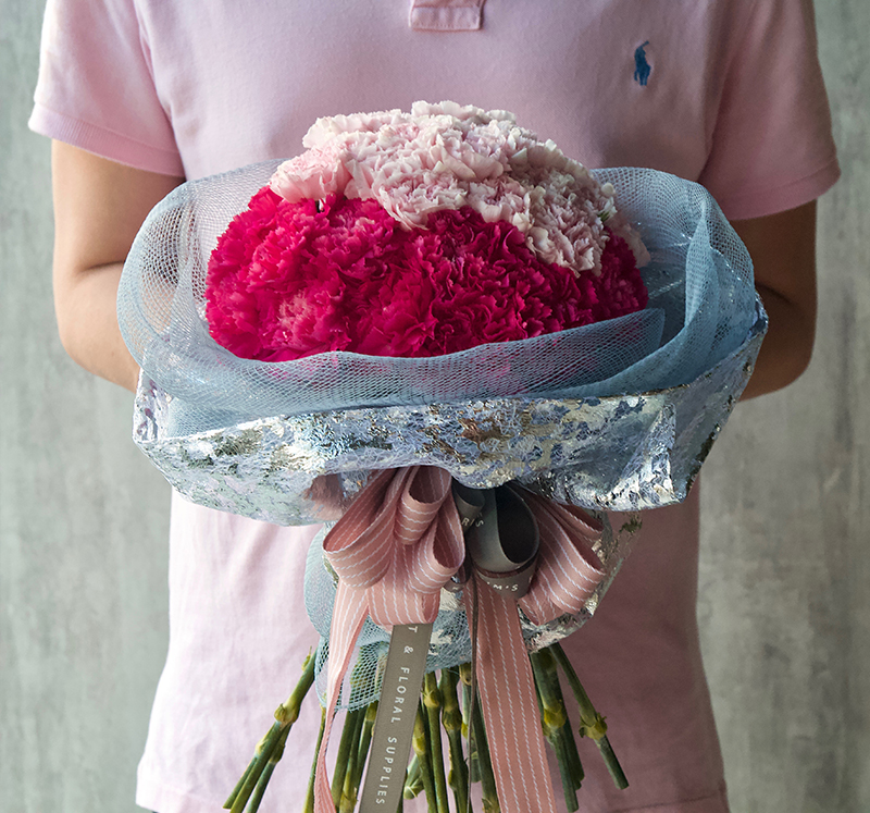 | Diva Indulge Mom on her special day with our luxurious Mother’s Day bouquet. Impressive fuchsia and sweet pink carnations are hand-crafted in a compact design, finished with a metal-inspired wrappers and soft nettings. Price : RM 350.00 (As shown) |