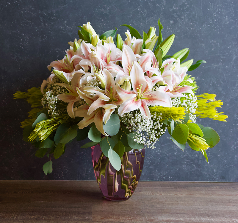 | I Lily Love You Show Mum how special she is with beautiful, radiant long-stem pink stargazer lilies. Everything about this gift is designed to wow her like never before. 15 stems of premium lilies are accented with fresh white million star and foliages. Highlight our classic blooms with one of our timeless luxury vases for a Mother’s Day she’ll remember forever. Lilies may arrive in bud form, to ensure freshness. Price : RM 450.00 (As shown) |