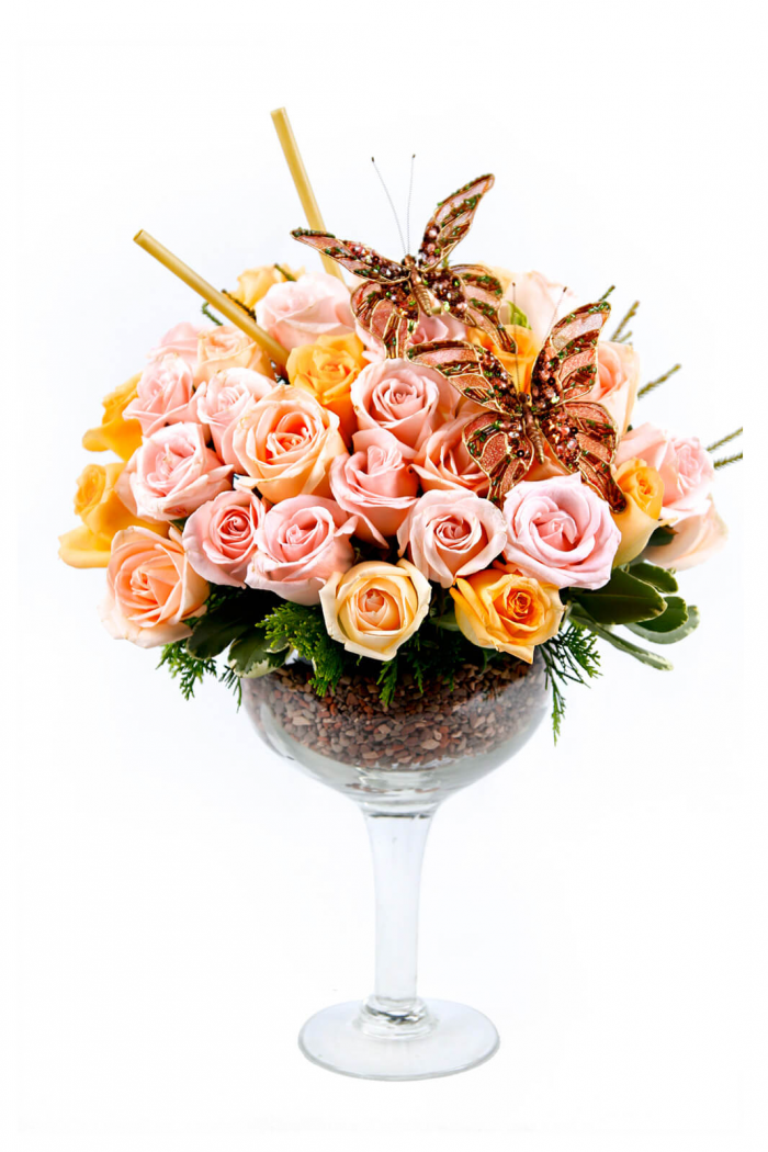 - Heres the perfect recipe for sending them a smile! Our creamy dream of roses is crafted by hand in an oversized wineglass vase, and comes with a pair of keepsake jewelled butterflies.