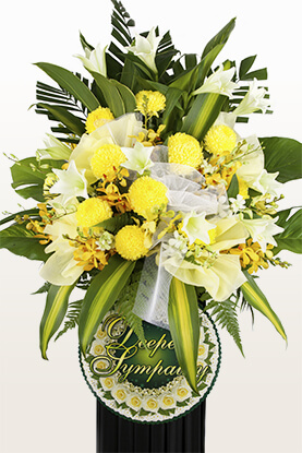 - This striking standing spray—beautifully arranged by our florists from an assortment of pale yellow and white blooms—is the perfect expression of all the love, compassion and support you feel during their time of mourning.