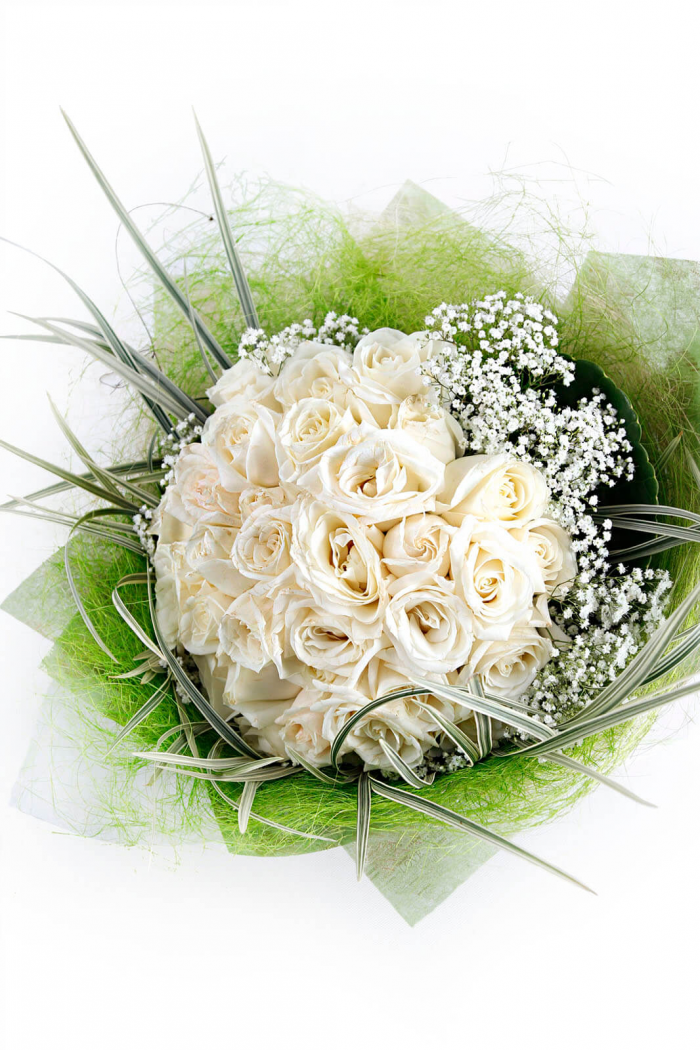 • Whatever they’re wanting, hoping, dreaming … each of the hand-picked white roses in this beautiful arrangement fulfills their wish to have fresh flowers delivered to the door.