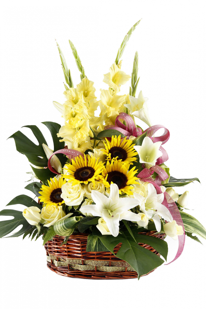 (4 Gladiolus, 12 Roses, 2 Casablanca Lilies, 3 Madonna Lilies, 4 Sunflowers)