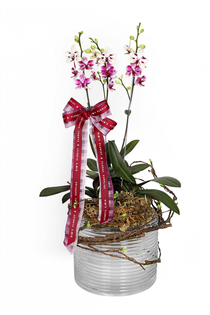 - Want to deliver a smile — and maybe even surprise them? With its deep purple shades, our Phalaenopsis orchid does just that. Arriving in a chic glass planter, it’s a gift that combines a touch of the exotic with vibrant colours and plenty of character.